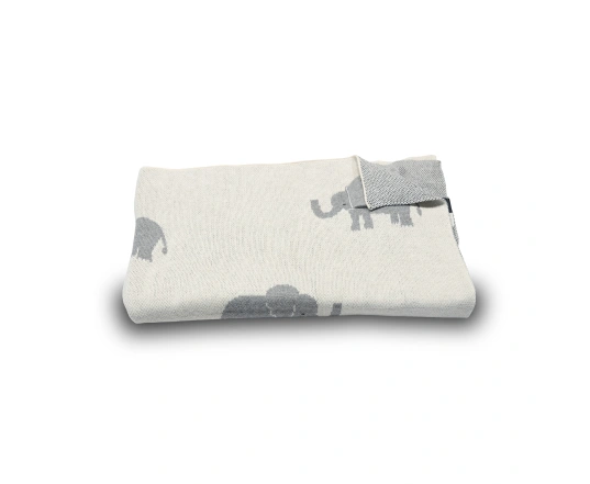 La manta Elephants destaca por su entrañable diseño de elefantes en tono gris sobre fondo beige. Está confeccionada con algodón de punto 100 % preencogido, lo que garantiza una suavidad extraordinaria y una gran durabilidad. Su tamaño de 80 x 100 cm es ideal para utilizarla en el cochecito, en la cuna o para envolver al bebé.